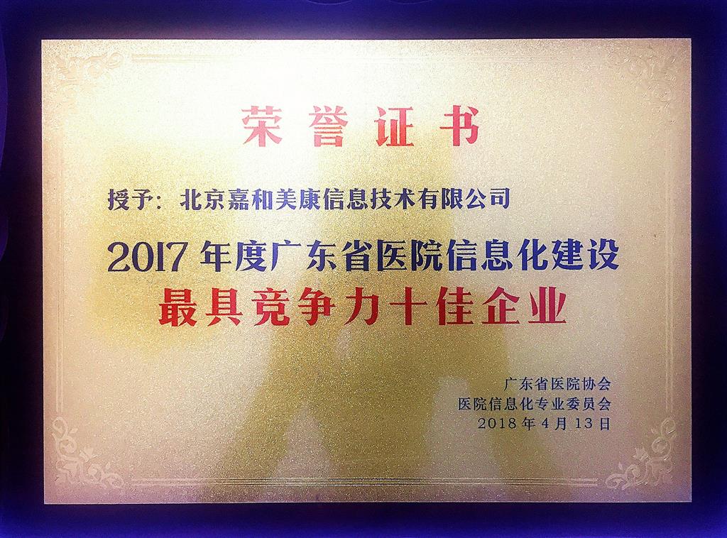 2017年度廣東省醫院信息化建設最具競爭力十佳企業