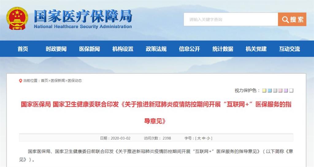 3月2日,國家醫(yī)保局、國家衛(wèi)生健康委聯(lián)合印發(fā)《關(guān)于推進新冠肺炎疫情防控期間開展“互聯(lián)網(wǎng)+”醫(yī)保服務(wù)的指導(dǎo)意見》(以下簡稱《意見》)。