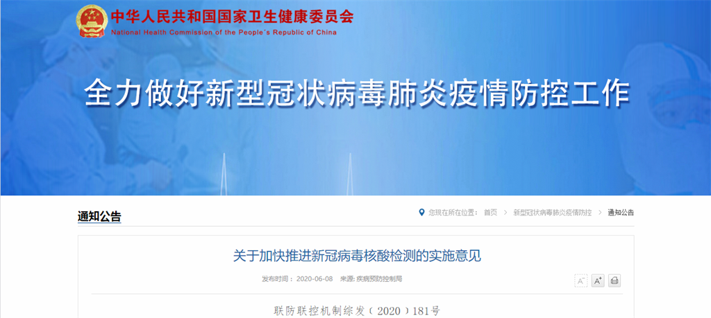 今日(6月8日),國(guó)家衛(wèi)生健康委官網(wǎng)發(fā)布《關(guān)于加快推進(jìn)新冠病毒核酸檢測(cè)的實(shí)施意見(jiàn)》(以下簡(jiǎn)稱(chēng)《實(shí)施意見(jiàn)》),指導(dǎo)各地在常態(tài)化疫情防控工作中做好核酸檢測(cè)工作,從5方面做出明確安排并提出要求。