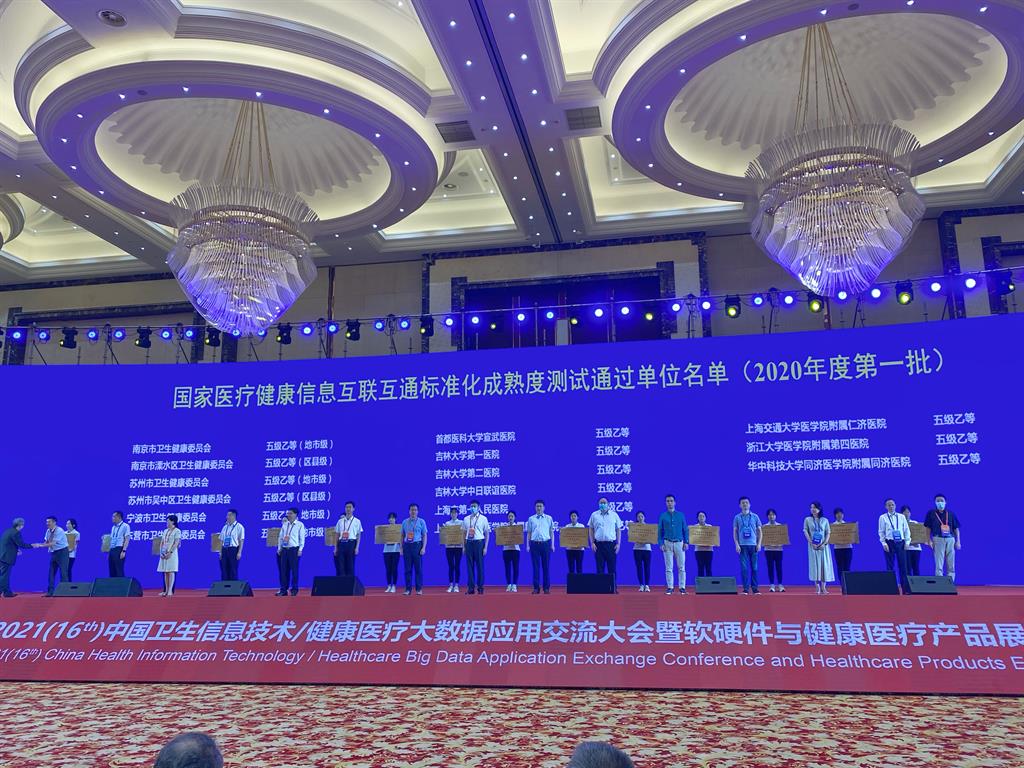 同時, 開幕式公布了2020年度第一批國家醫療健康信息互聯互通標準化成熟度測評結果,并為通過五級乙等測評的單位進行授牌。