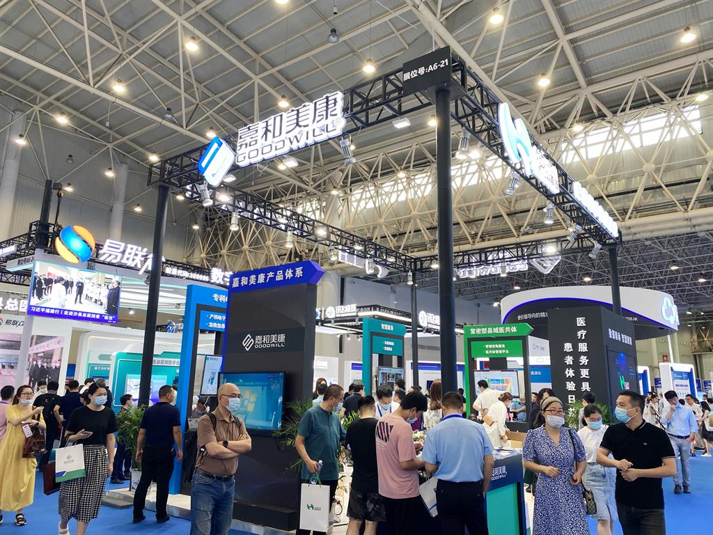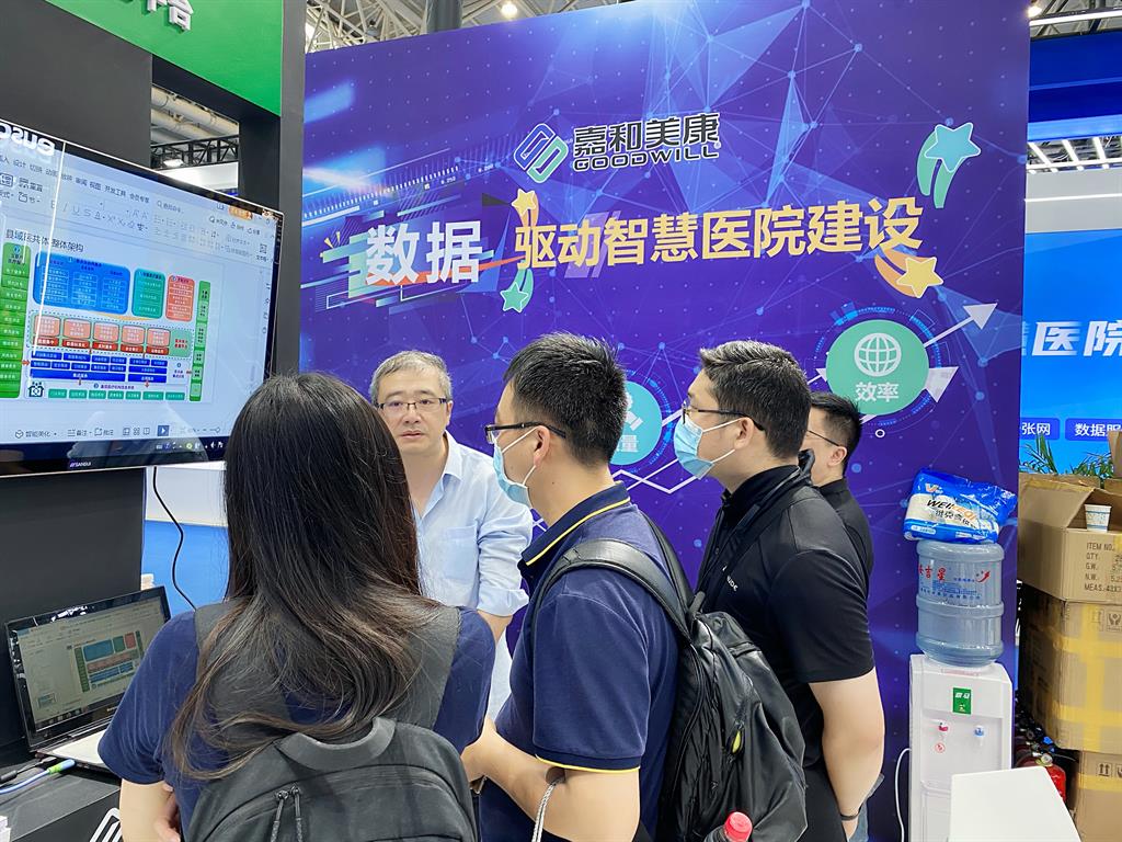 國家衛生健康委統計信息中心副主任、中國衛生信息與健康醫療大數據學會副會長胡建平等領導蒞臨嘉和美康展臺嘉和美康展臺前,參觀的嘉賓絡繹不絕。