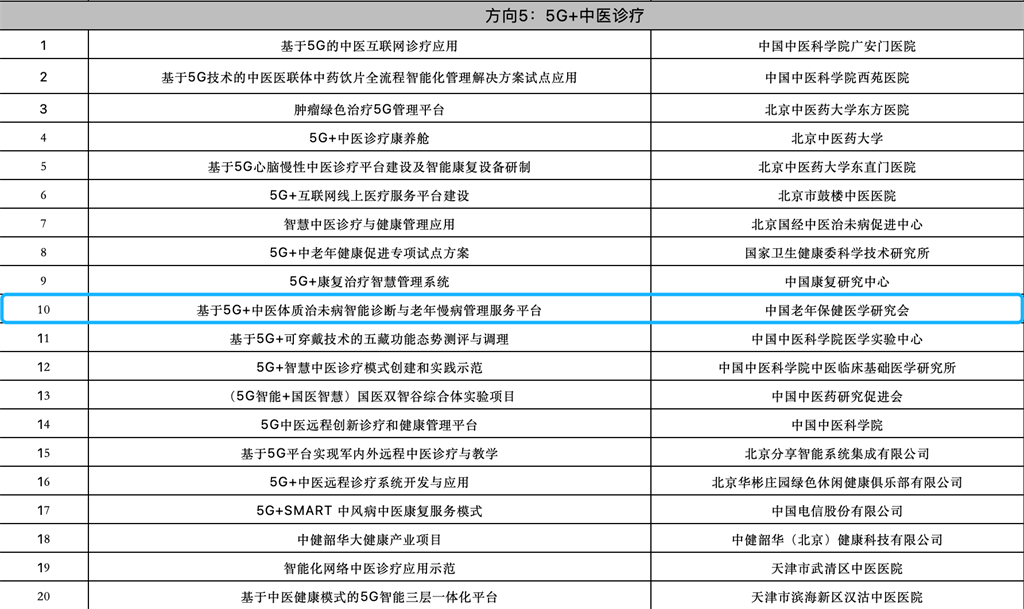 根據(jù)《工業(yè)和信息化部辦公廳國(guó)家衛(wèi)生健康委員會(huì)辦公廳關(guān)于組織開(kāi)展5G+醫(yī)療健康應(yīng)用試點(diǎn)項(xiàng)目申報(bào)工作的通知》有關(guān)要求,按照“寬進(jìn)嚴(yán)出,優(yōu)中選優(yōu)”的整體工作思路,經(jīng)項(xiàng)目申報(bào)、專(zhuān)家初審、復(fù)審等程序,評(píng)審結(jié)果于2021年8月17日至8月23日公示。其中,由嘉和美康與中國(guó)老年保健醫(yī)學(xué)研究會(huì)、北京中醫(yī)藥大學(xué)、北京郵電大學(xué)、北京醫(yī)院、中國(guó)移動(dòng)通信集團(tuán)北京有限公司、杭州古道九和醫(yī)療科技有限公司聯(lián)合申報(bào)的課題《基于5G+中醫(yī)體質(zhì)治未病智能診斷與老年慢病管理服務(wù)平臺(tái)》,成功入選。