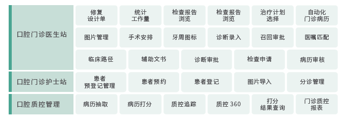口腔專科系統(tǒng)是嘉和美康為口腔專科醫(yī)院與綜合醫(yī)院口腔專業(yè)定向設(shè)計(jì)的具有臨床深度、貼近專科流程的管理系統(tǒng)。系統(tǒng)涵蓋頜面外科、修復(fù)、正畸、牙體牙髓、黏膜、兒童口腔、預(yù)防、種植等不同專業(yè)的診療流程,以治療方案為主線,以醫(yī)生為核心、提供跨越門診次、貫穿多科室的病歷數(shù)據(jù)采集與展示,并為用戶提供病歷、處方、技工單、專科檢查圖表、影像照片,預(yù)約日程等多種數(shù)據(jù)的采集管理流程,全面支持在全院級(jí)和專科級(jí)別的質(zhì)控管理。