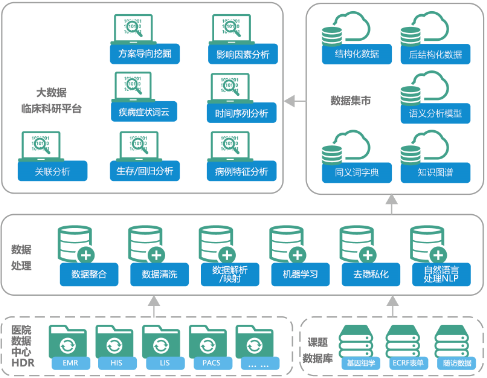 大數據科研分析平臺是以人工智能技術為核心驅動、以院內外真實診療數據為基礎支撐的創新型臨床-科研一站式服務體系。通過對疾病數據的自動整合、處理,可輔助醫生快速建立覆蓋多病種、全變量的高質量專病數據庫;并在此基礎上,利用相應算法模型,快速實現對數據的深度挖掘和多維分析,提升科研效率及質量,促進成果轉化,實現臨床-科研協同發展。